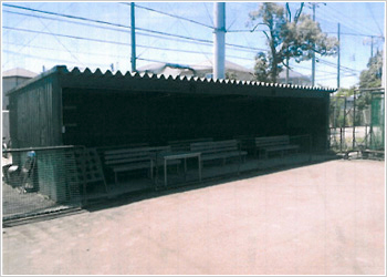 昨今の異常な暑さから、生徒の健康対策としてグラウンドにあるベンチ屋根・壁に遮熱塗装の施工をお願いしました。