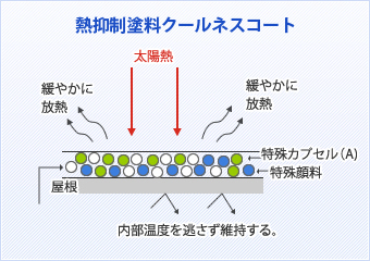 ● 建物の屋根・外壁・・・室温低下・結露対策・冷房コスト削減 ● 車道・歩道・駐車場・・・蓄熱を低下・照り返し防止・骨材飛散防止 ● タンク・冷却塔・冷却水配管・・・液体温度低下 ● 防水層・・・防水層を保護し劣化抑制